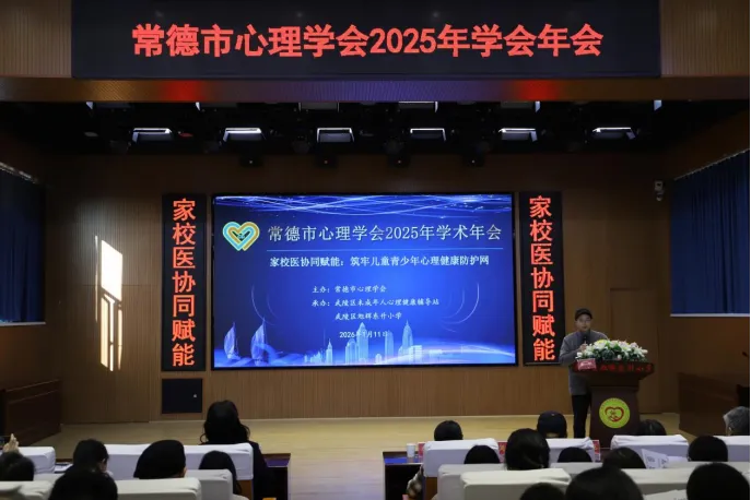 1月10日至11日,常德市心理学会2025年学术年会盛大举行。本次年会以“家校医协同赋能:筑牢儿童青少年心理健康防护网”为核心主题,吸引了来自教育、卫健系统,心理服务机构及社会各界的100余位专业人士齐聚一堂,共同探讨儿童青少年心理健康领域的前沿问题与实践经验,为守护儿童青少年心理健康凝聚智慧与力量。