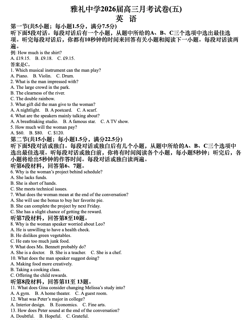 点击关注,后台发送信息【湖南省长沙市雨花区长沙市雅礼中学2025-2026学年高三上学期1月月考英语试题】领完整word版试卷+答案解析!可自主编辑打印!