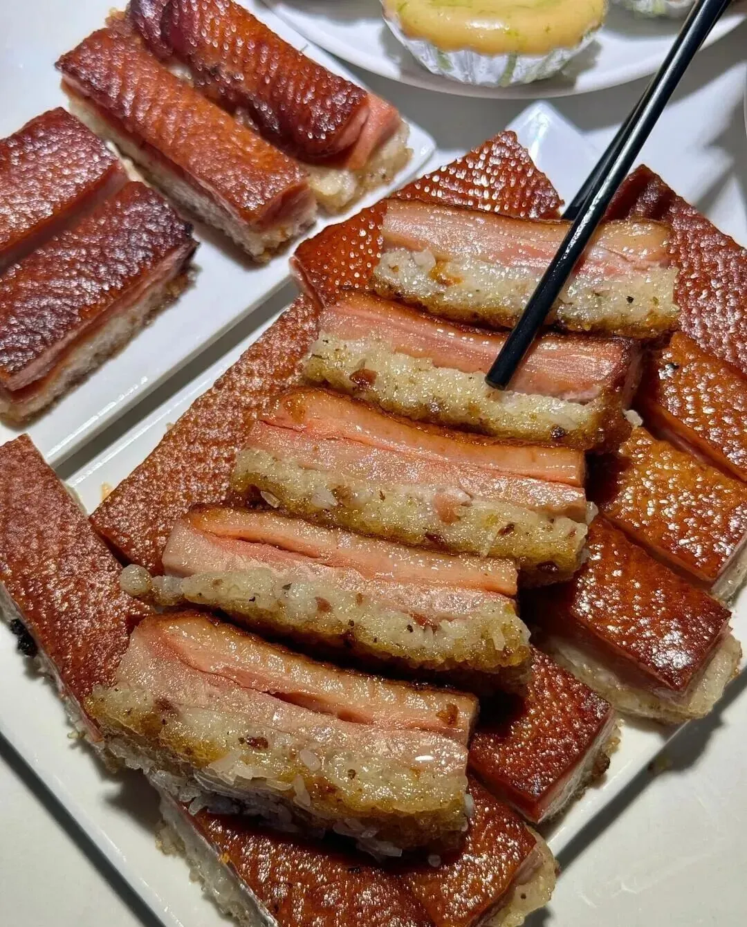这道菜厉害的地方在于 , 它不是单一的好吃。 外面酥、里面嫩、糯米软糯还带着肉香 , 三种口感在嘴里融合 , 层次感特别丰富。