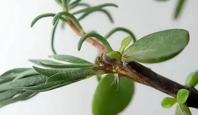 找一棵金枝玉叶当砧木 , 太阳花枝条当插穗 , 都是马齿苋科的 , 亲缘关系近 , 成活率高。