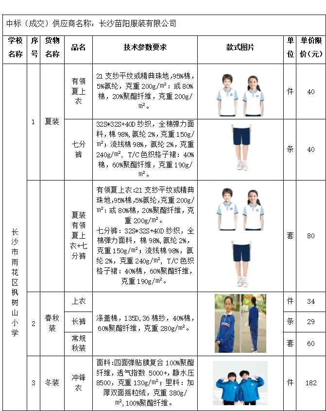 长沙市雨花区枫树山小学等十四所学校学生校服推荐服务供应商采购项目中标(成交)结果公告