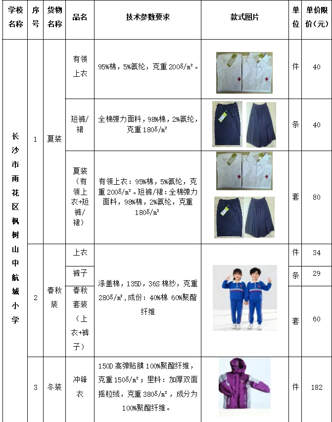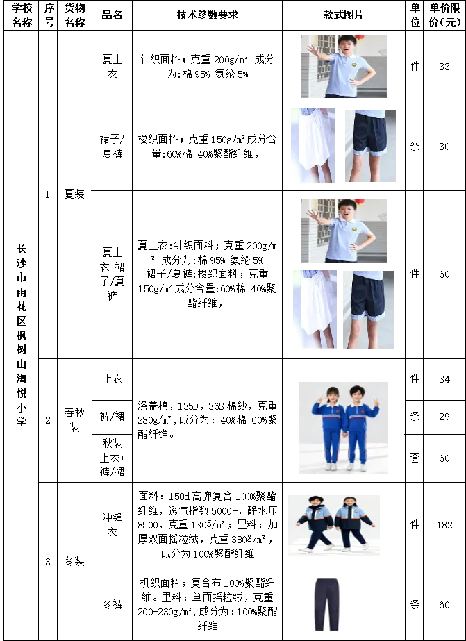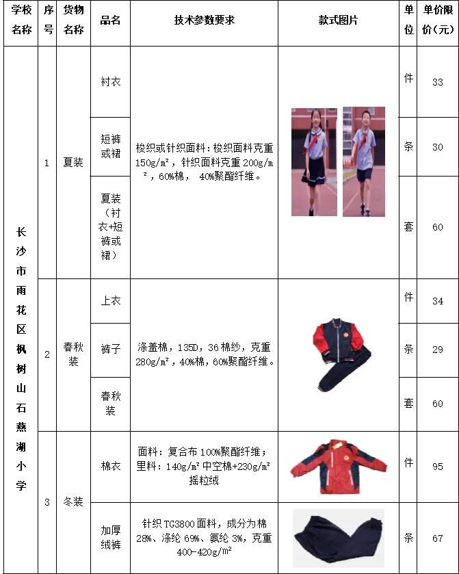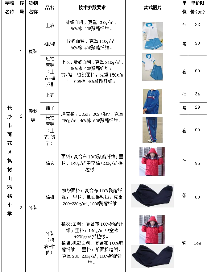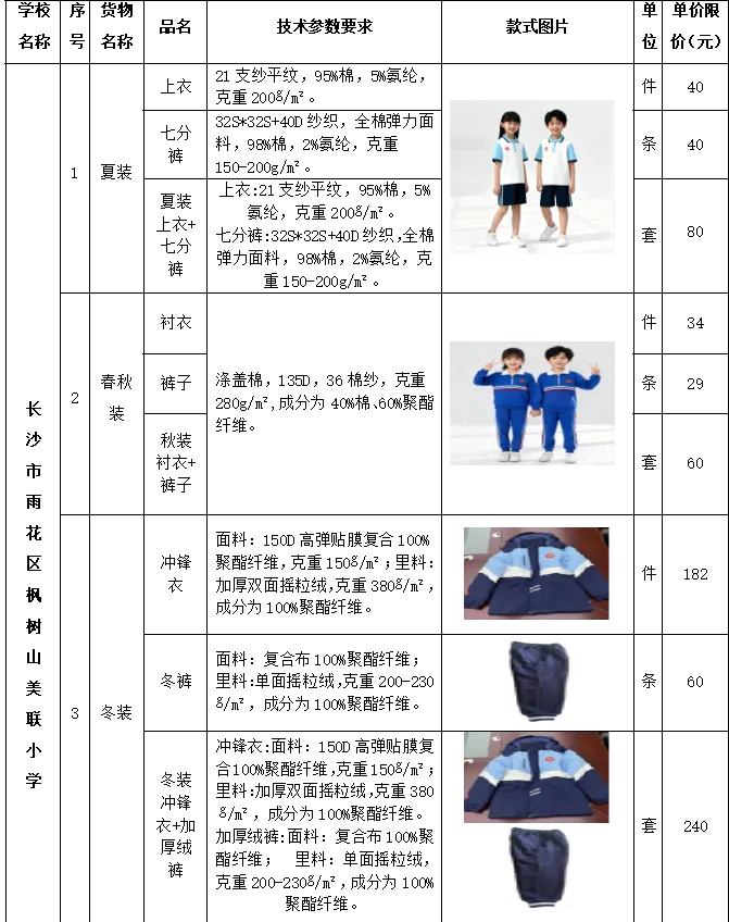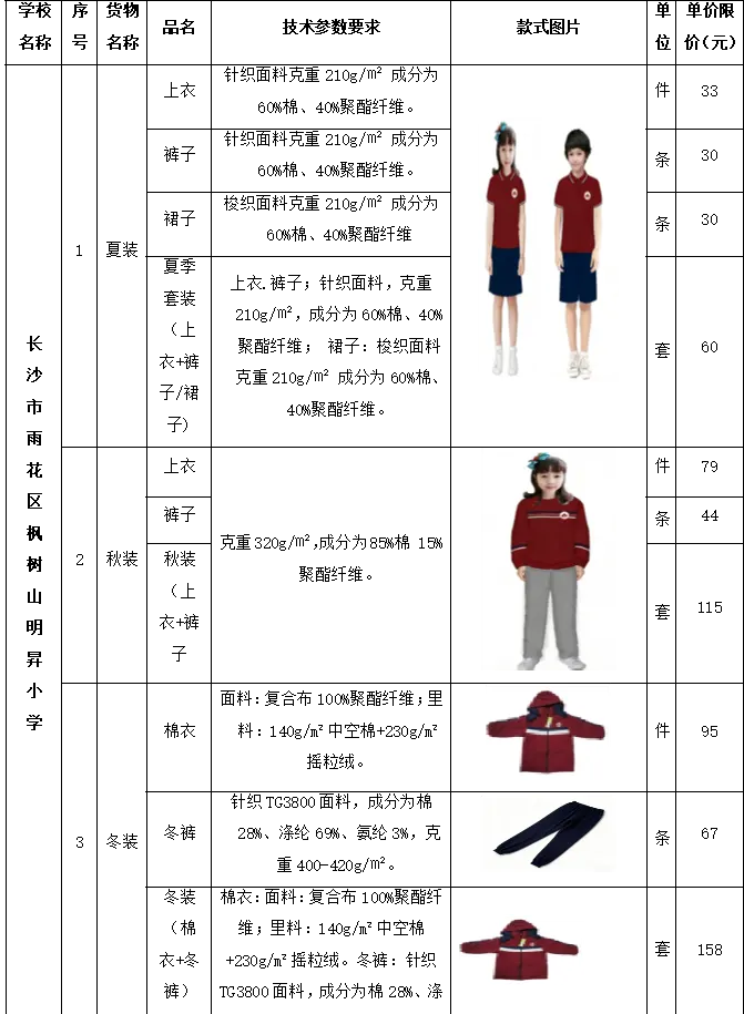 长沙市雨花区枫树山小学等十四所学校学生校服推荐服务供应商采购项目