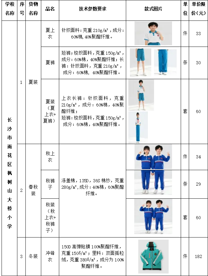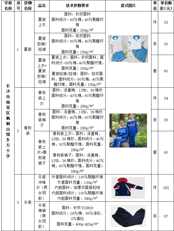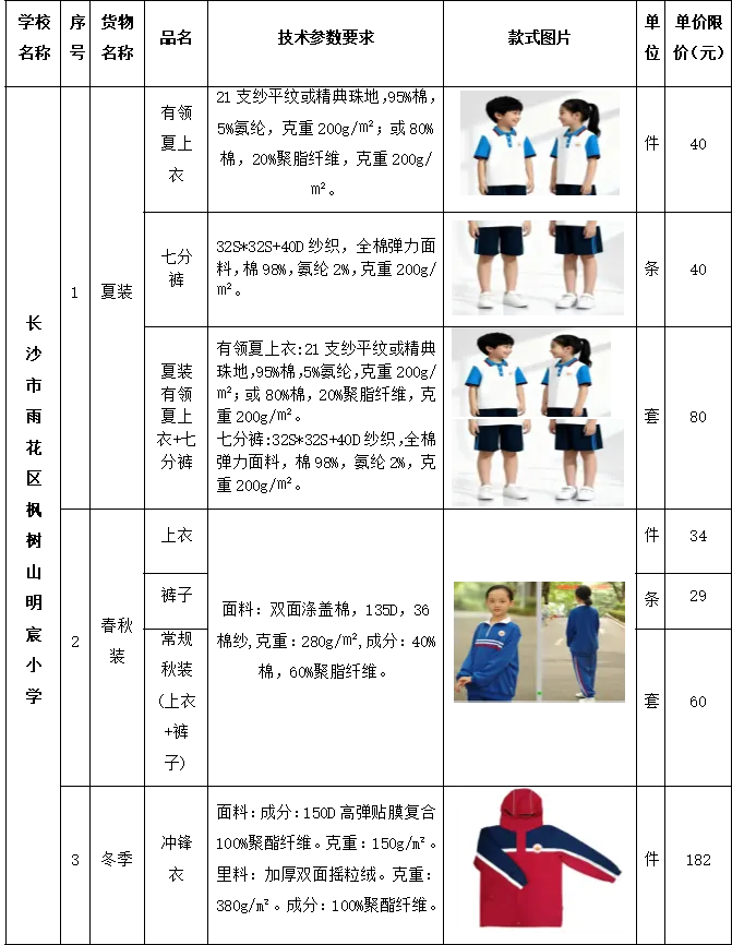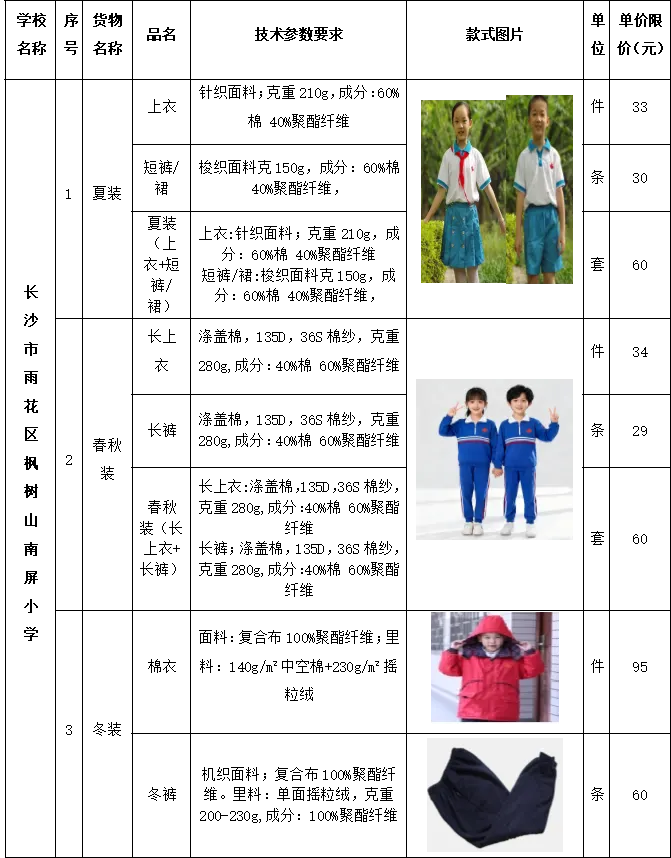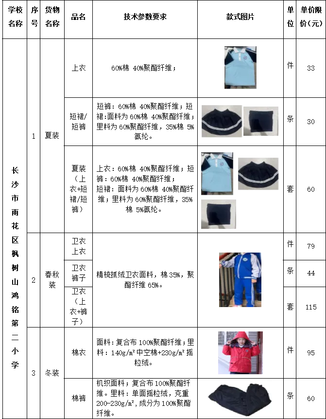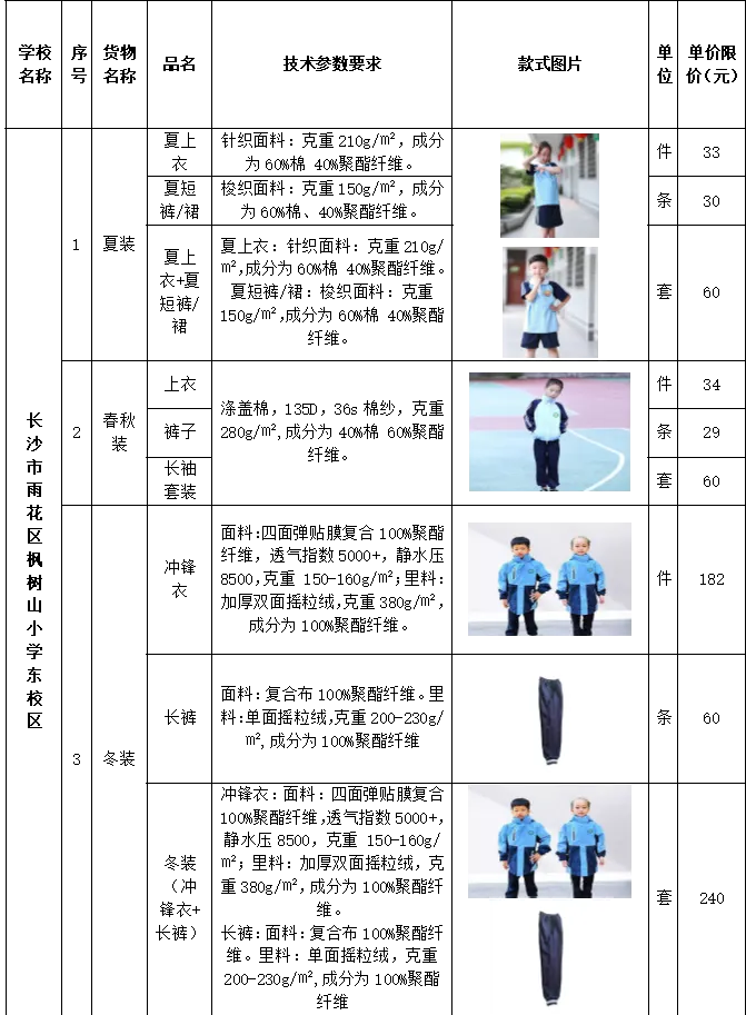 长沙市雨花区枫树山小学等十四所学校学生校服推荐服务供应商采购项目