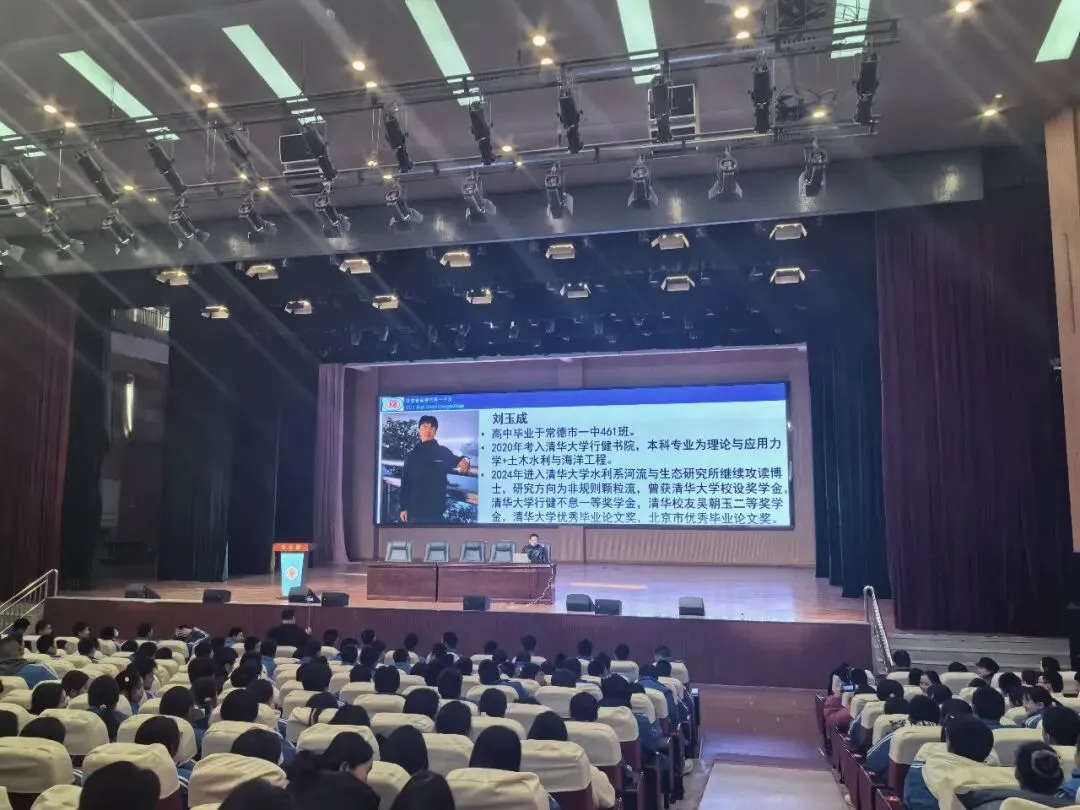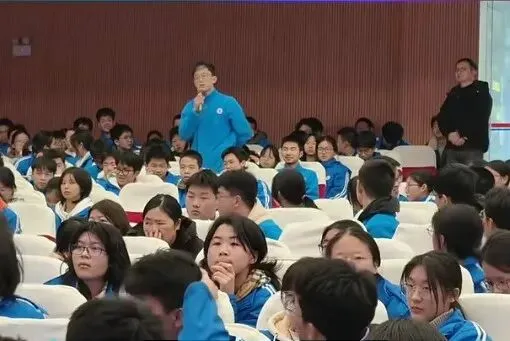 学长分享环节温情与干货兼具,成为现场最受关注的亮点之一。活动特别设置现场连线环节,邀请两位从常德市一中走出的优秀毕业生“传经送宝”,用同龄人的视角传递学习智慧。连线学长分别是:2025届551班毕业生杨玉涵同学,以常德市直历史类第一名成绩考入中国人民大学;2020届461班毕业生刘玉成同学,当年考入清华大学,现为清华大学水利系河流与生态研究所博士研究生。两位学长结合自身高中学习的亲身经历,毫无保留地分享了高中学习规划的核心技巧,重点围绕数学、物理两门学科的难点突破、思路构建、习惯养成等关键问题,给出了具体可操作的建议。互动环节中,同学们踊跃举手提问,学长们耐心细致地逐一解答,现场气氛热烈融洽,让学子们在共鸣中汲取了前行的力量与信心。