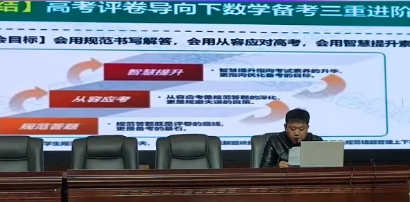 活动伊始,高一数学备课组长田宏达老师率先登台开讲。他以丰富的高考阅卷实践经验为独特切入点,从答题规范的细节把控、得分要点的精准捕捉、易错题型的规避技巧、日常学习的规划逻辑等,进行系统且细致的梳理。田老师的讲解兼具专业性与实操性,不仅为学子们厘清了数学学习的核心脉络,更清晰指明了高效学习与科学备考的方向,助力大家快速搭建起扎实的数学学科学习框架。