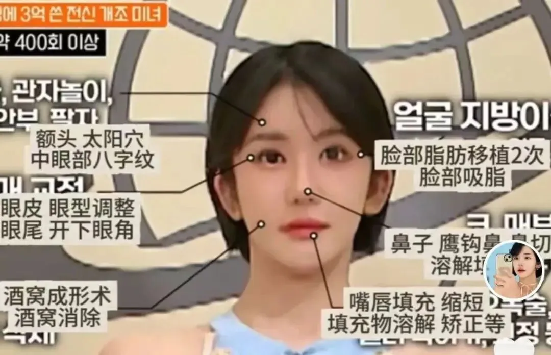 太猛了!!韩国女网红@旺仔莉媛自曝10年整容+保养一共有400次左右,花了3亿韩元(150w人民币)。