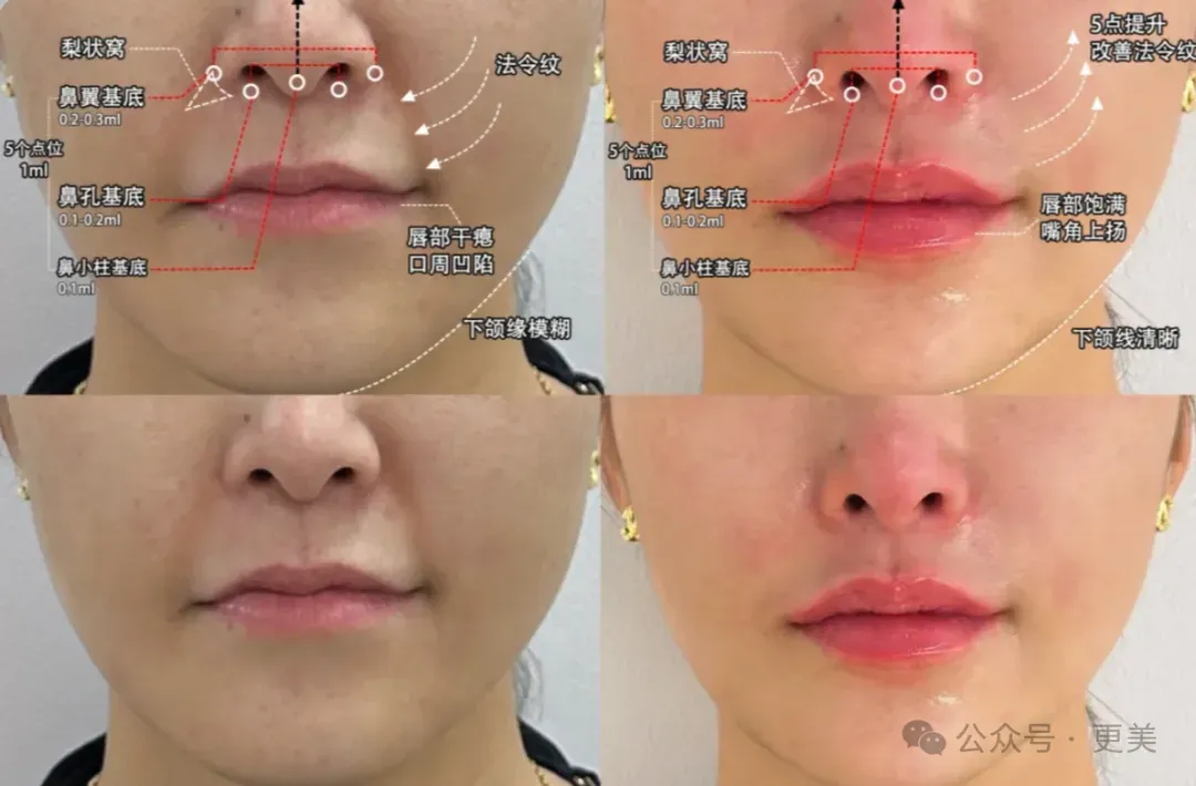 不仅能垫高鼻梁,还能改善因鼻基底凹陷带来的法令纹,适合面部伴随初老症状、需要鼻部塑形同时兼顾中面部提升的人群。