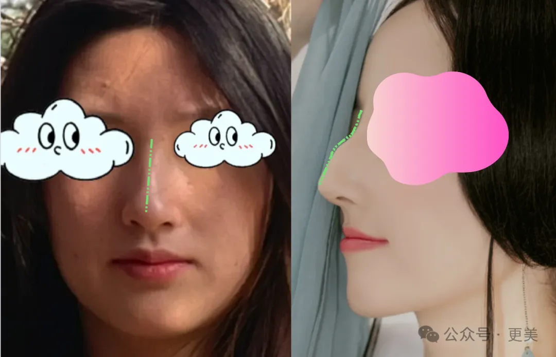 【鼻山根】,也就是鼻子的起点,适度抬高山根确实能增加面部精致混血感,