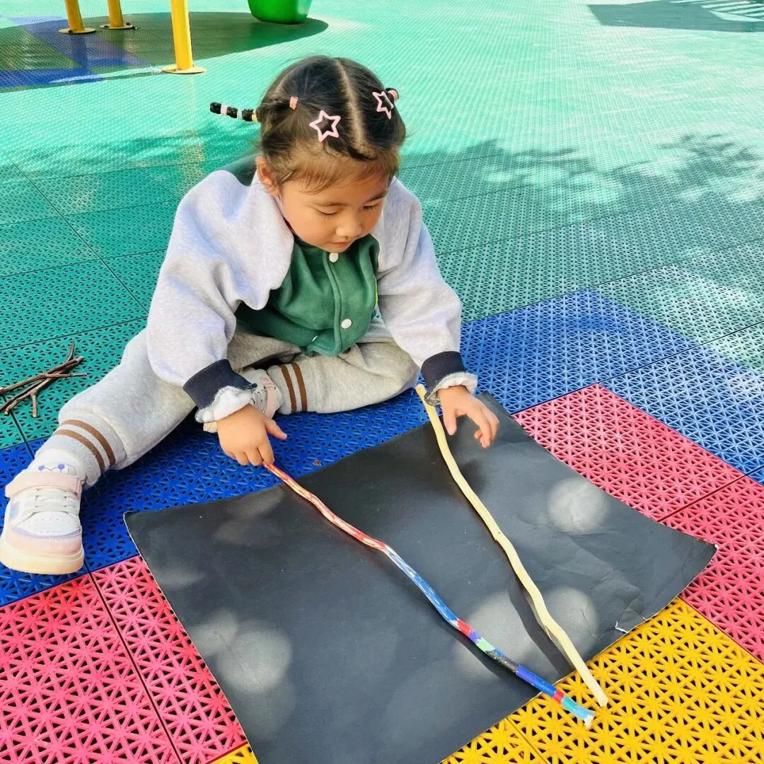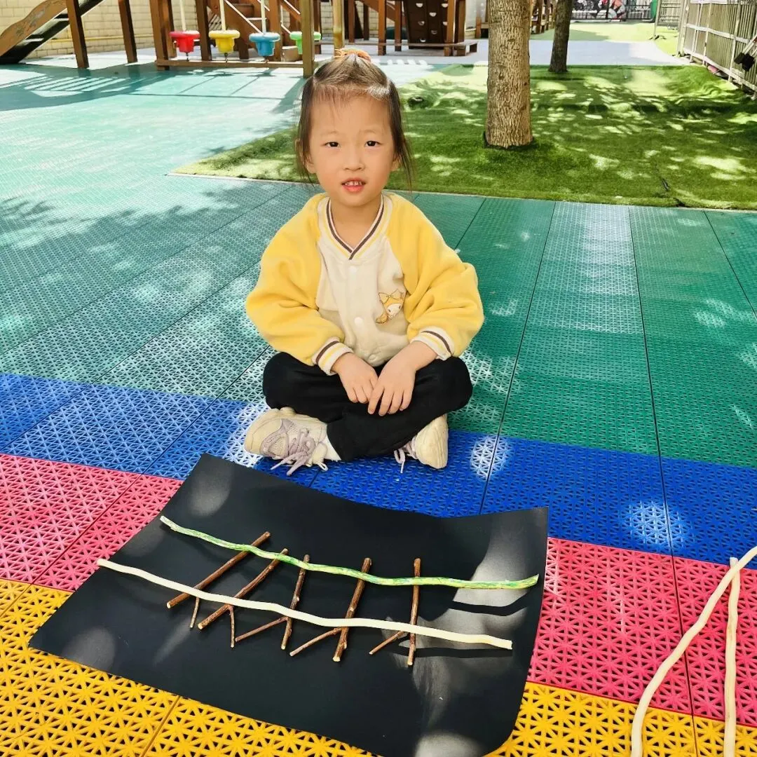在这次“枝”趣探索活动中,孩子们感知和体验到了树枝的多元化,了解了树枝的不同特点与特征,并知道了树枝的作用性,从寻“枝”—玩“枝”—探“枝”的整个过程,不仅仅是探索发现活动,更是一次深刻的学习体验过程。还通过用树枝拼搭了“跳房子”,“搭建帐篷”“烧烤架”,设计绘画树枝,拼搭各种有趣的树枝图案,以及设计不同造型的树枝等等。这些宝贵的经验将伴随他们成长,也将成为他们未来探索世界的重要基石。