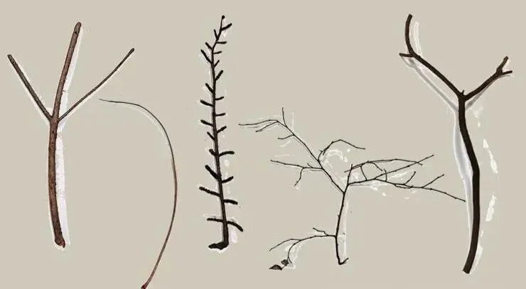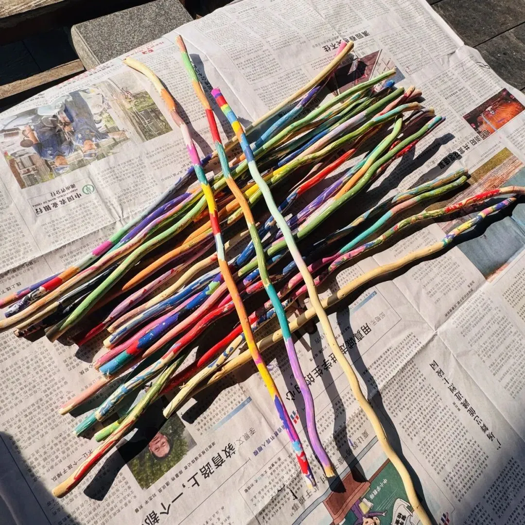 户外活动时,孩子们发现地上有一些树枝。这些树枝有的弯弯的、有的长长的......