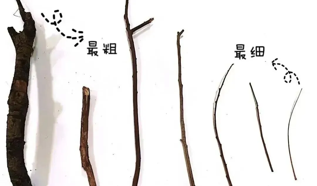 孩子们还发现了树枝的粗细不一样,有的很粗,一只手都握不住,有的很细,轻轻一掰就掰断了。