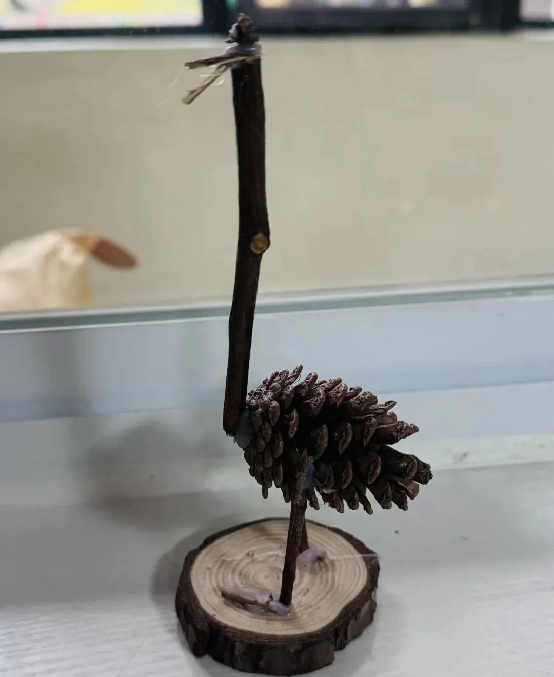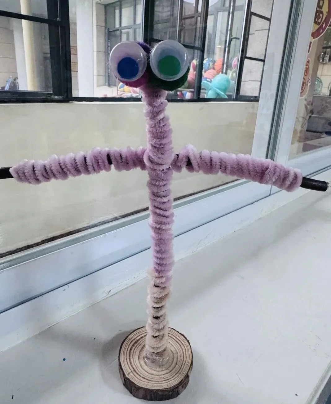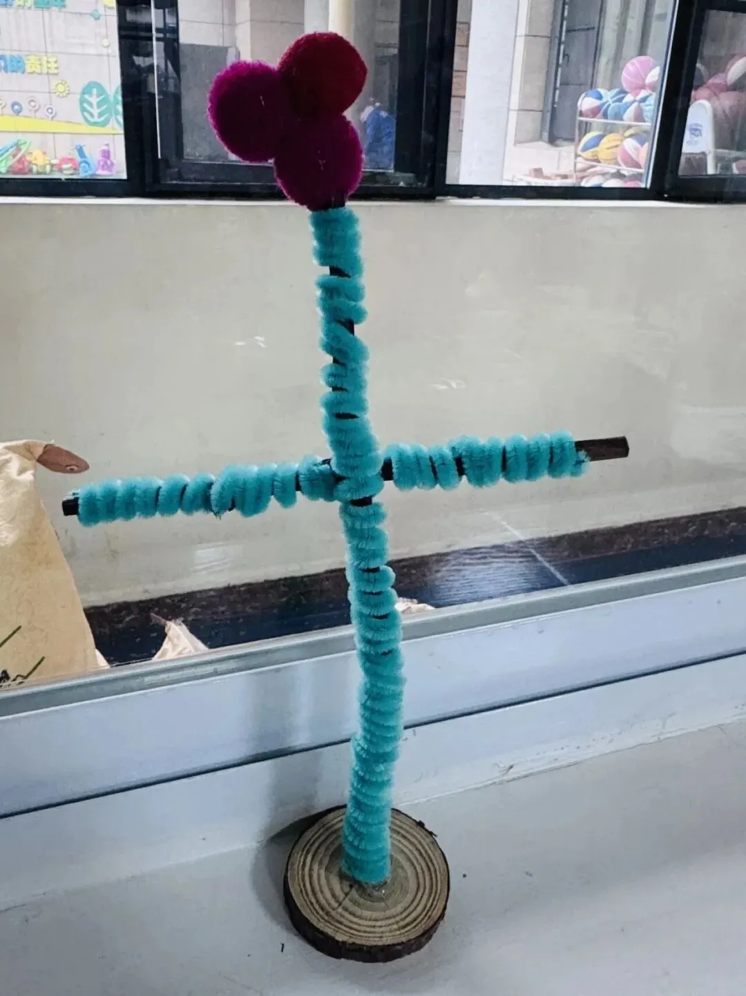 用毛线给树枝穿上各种漂亮的衣服,再贴上眼睛,做上装饰,就变成了一个有趣的树枝小人啦!