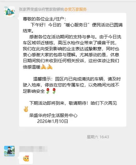从细致的洗车服务到暖心的美食派送,每一项服务都精准对接业主需求。未来,物业服务中心将继续深耕细节、传递温度,策划更多优质便民活动,让小区充满烟火气与幸福感,共建和谐美好的家园。