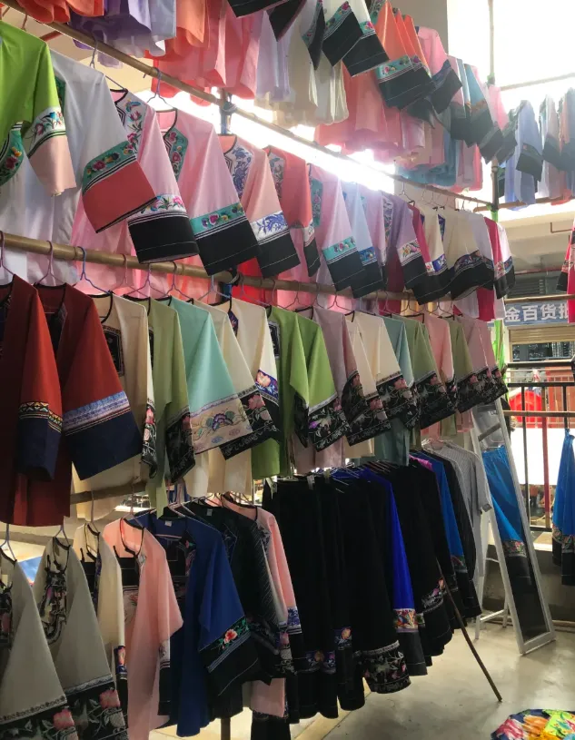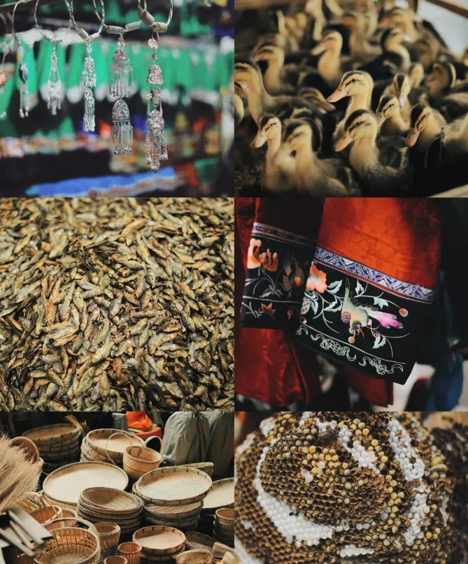 我特意起了个大早,从市区搭乘6路公交(约1小时)前往。八点前的市场最为热闹,走进其中,瞬间被喧嚣与色彩包围。身着传统苗族服饰的摊主与采购者往来穿梭,仿佛一场流动的苗族风情画。