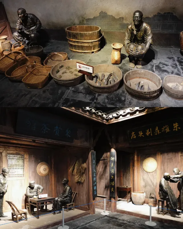 三楼则生动展现了土家族与苗族的生活风貌。通过复原的吊脚楼、染坊、家居场景,配合实物展陈,让人仿佛走进古老的村寨。