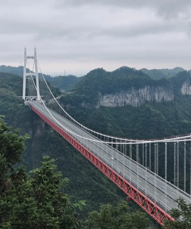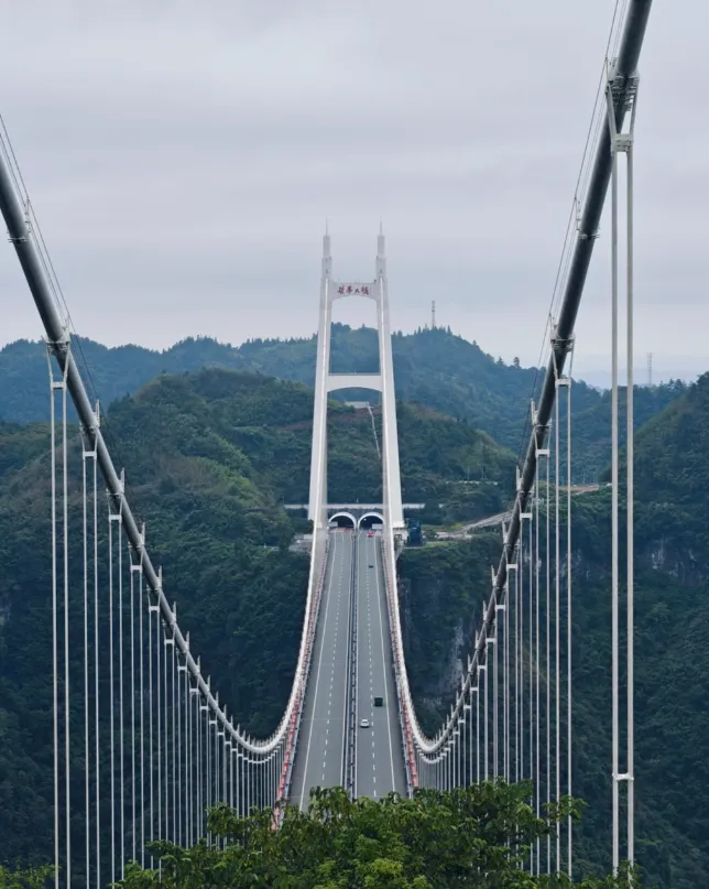 矮寨大桥,是必须亲临才能体会其震撼的“现代奇观”。它并非横跨江河,而是像一道钢铁飞虹,直接悬挂在落差达300多米的德夯大峡谷之上,将天堑变为通途。