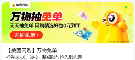 美团闪购 天天万物抽免单0元到手!全国可抽