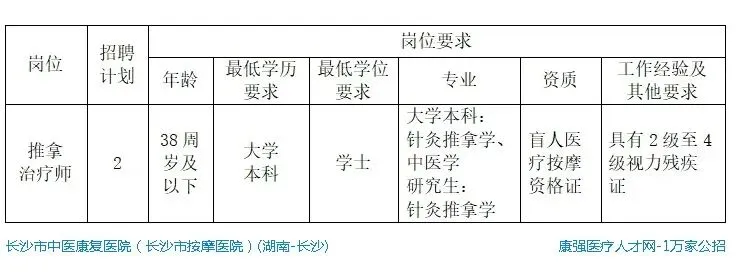 长沙市中医康复医院编外合同制人员公开招聘简章