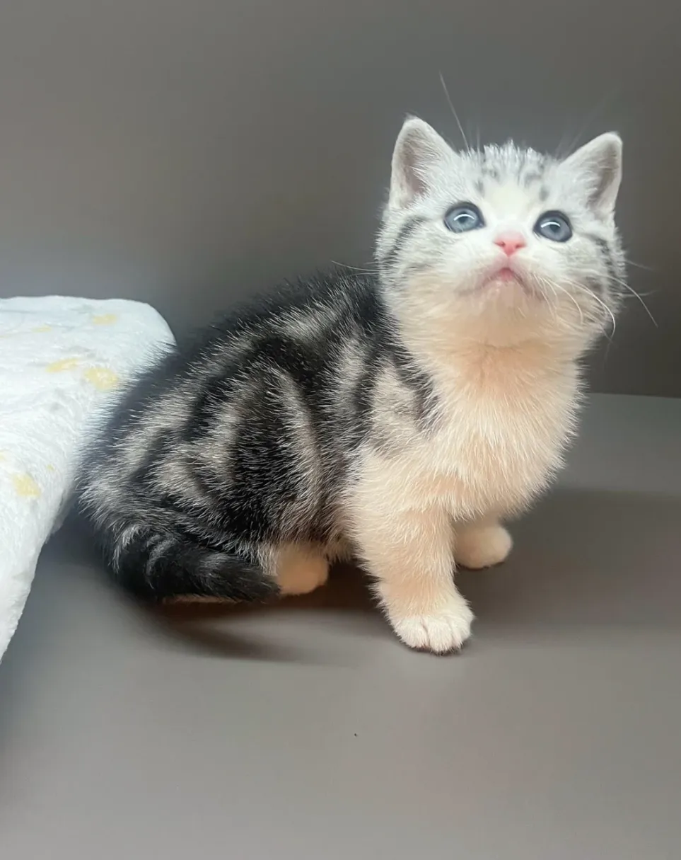 宠物信息:美短幼猫生了一窝,现在已经两个月大了,已经断奶了,这几天在学用猫砂,弟弟妹妹都有,性格温顺,很乖。