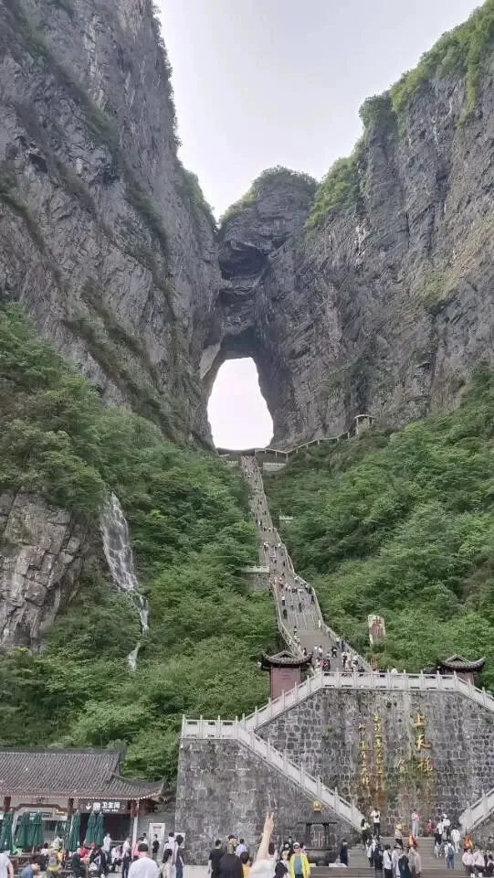 第二天是我三天两晚的最后一天,游天门山。又是6点多起床。到索道站后,又是选择路线,新导游建议B线去,A线回,又是补交75块钱的交通等费用。乘坐漫长的索道和扶梯。终于到了天门洞,又上山顶。新导游一路上也是不断地讲天门山曾经出现的一些意外事故,不断的地讲本命年犯太岁,必须朱砂破解这样的话。果然,山顶的寺院里,又是个朱砂销售点。两天时间四次购物。报团费,交通晚会费,购物费等等,此次张家界三天游玩,总共花了不下1600块。值得吗?唉!让人欢喜让人愁的张家界之行。(旧游整理)