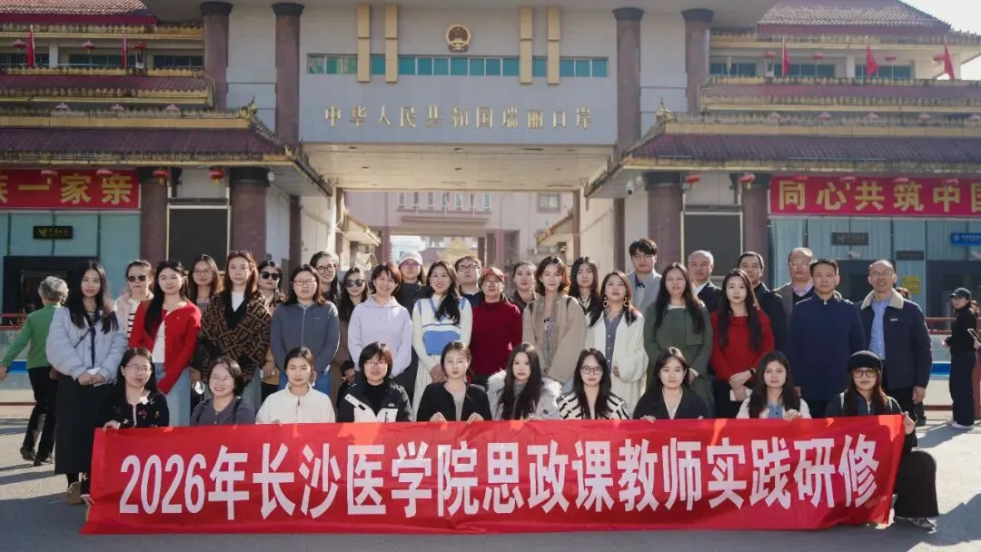 为深化思政教育实践内涵,推动理论教学与边境人文、家国情怀深度融合,1月12日,长沙医学院马克思主义学院组织全体教师赴瑞丽、腾冲开展研学活动,在“一寨两国”与姐告国门、来凤山的实地探访中,上了一堂生动鲜活的思政课。