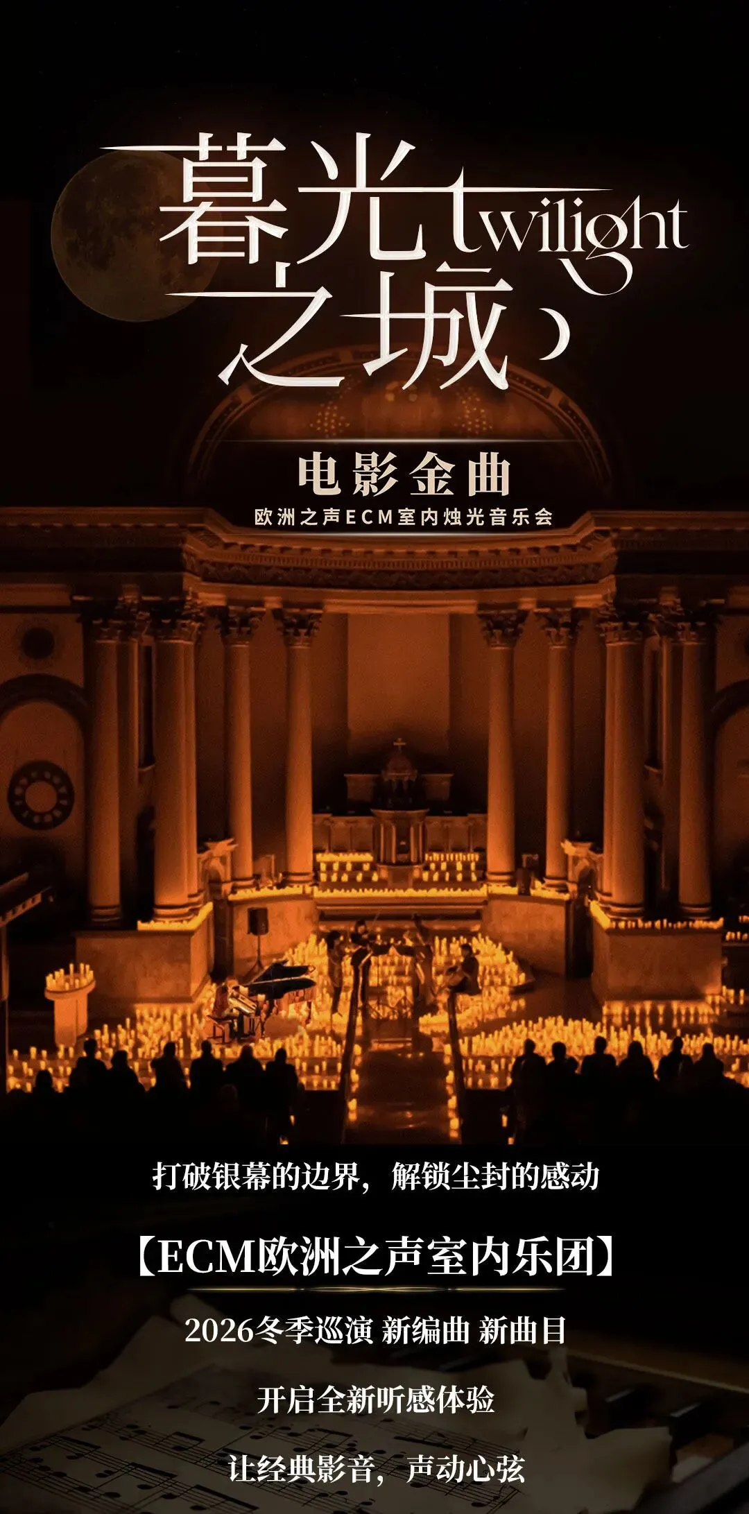 长沙|《暮光之城》电影金曲烛光音乐会2026年1月17日登陆湖南大剧院!ECM欧洲之声室内乐团演绎,限时早鸟票优惠中!