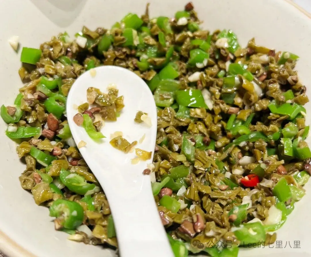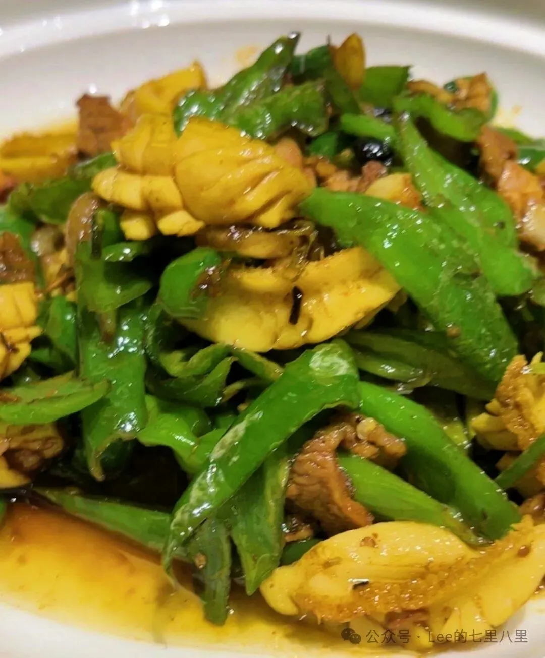 朴豆角炒青椒,朴豆角没有平时吃的朴豆角那么干,切得更碎,跟青椒大蒜一起炒,入味,对牙口也比较友好,是个下饭菜,但是口味不是特别重的那种,还不错吧。