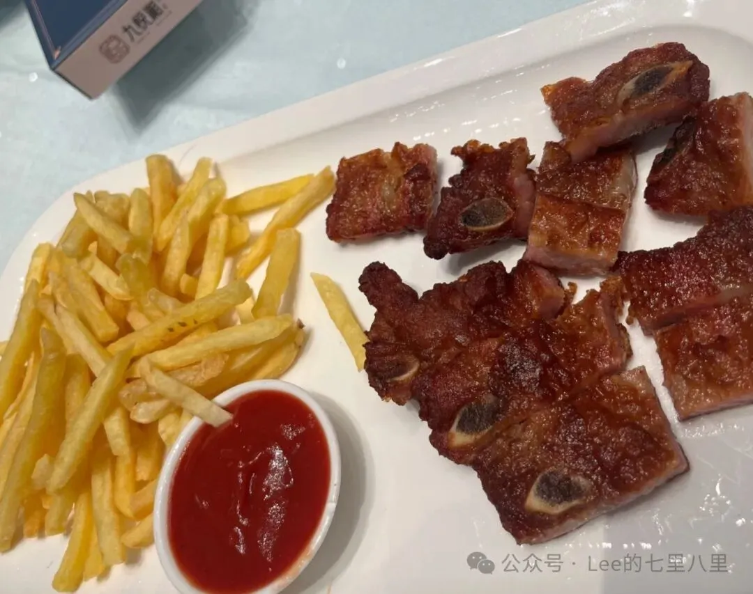 这个排骨,不是腊排骨,我不是平时那种蒜香排骨的做法,有点像碳烤排骨吧,中规中矩的,但是看这个造型和薯条的配置就晓得,小朋友们最爱。