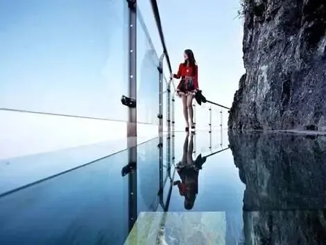 【盘龙崖玻璃栈道】玻璃栈道是张家界天门山景区继悬于峭壁之上的鬼谷栈道、凭空伸出的玻璃眺望台、横跨峡谷的木质吊桥后打造的又一试胆力作。可与举世闻名的美国大峡谷玻璃走廊“天空之路”媲美,因而有了东方“天空之路”的美誉。