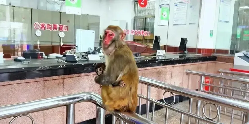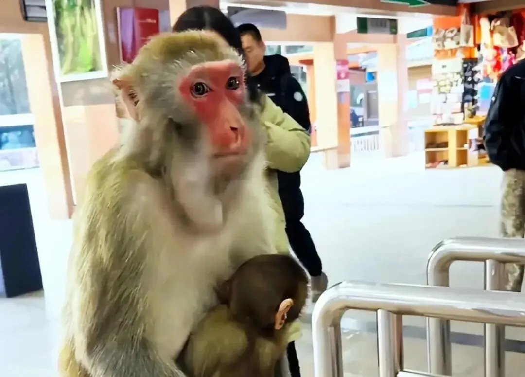 张家界售票厅,猴妈带娃蹲栏杆,游客举着手机咔嚓咔嚓拍,它却淡定得像在等老板打卡!你猜怎么着?这猴妈没惹人,也没抢零食,就安安静静蹲着——为啥不回猴群?看完我眼眶一热,原来它早看透了这世道。