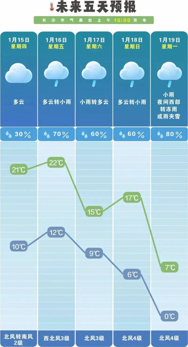 今日,长沙市气象台发布的未来五天天气预报,清晰勾勒出这场“冷暖大对决”的轨迹。