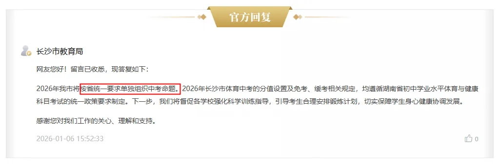 官方回复:2026年我市将按省统一要求单独组织中考命题。