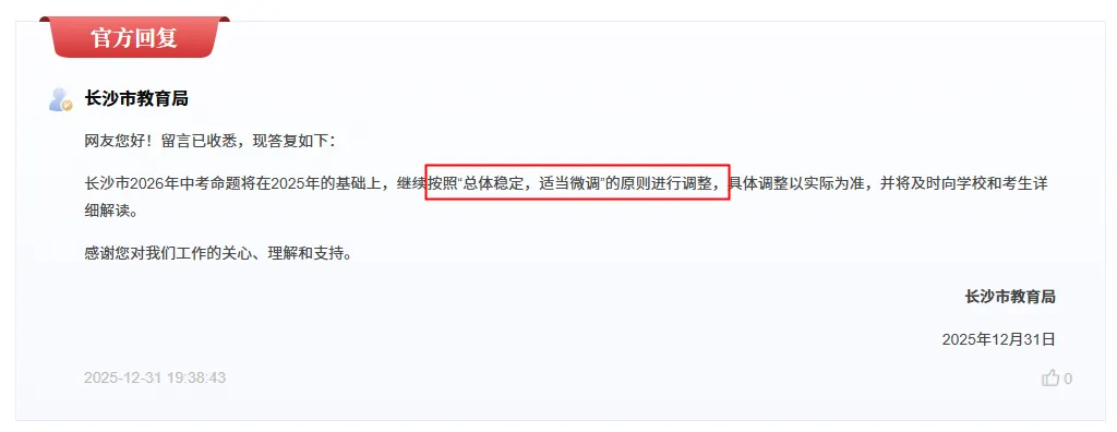 综上所述,按照官方给出的回答,26年长沙市中考还是会单独命题出卷,不用省卷;在命题方面,也是以25年为基础,总体变动不大。