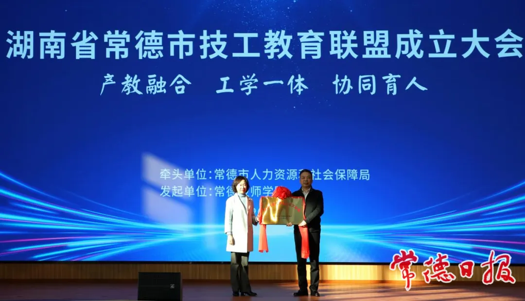 1月13日下午,湖南省常德市技工教育联盟成立大会在常德技师学院举行。副市长陈华出席会议并为联盟授牌。