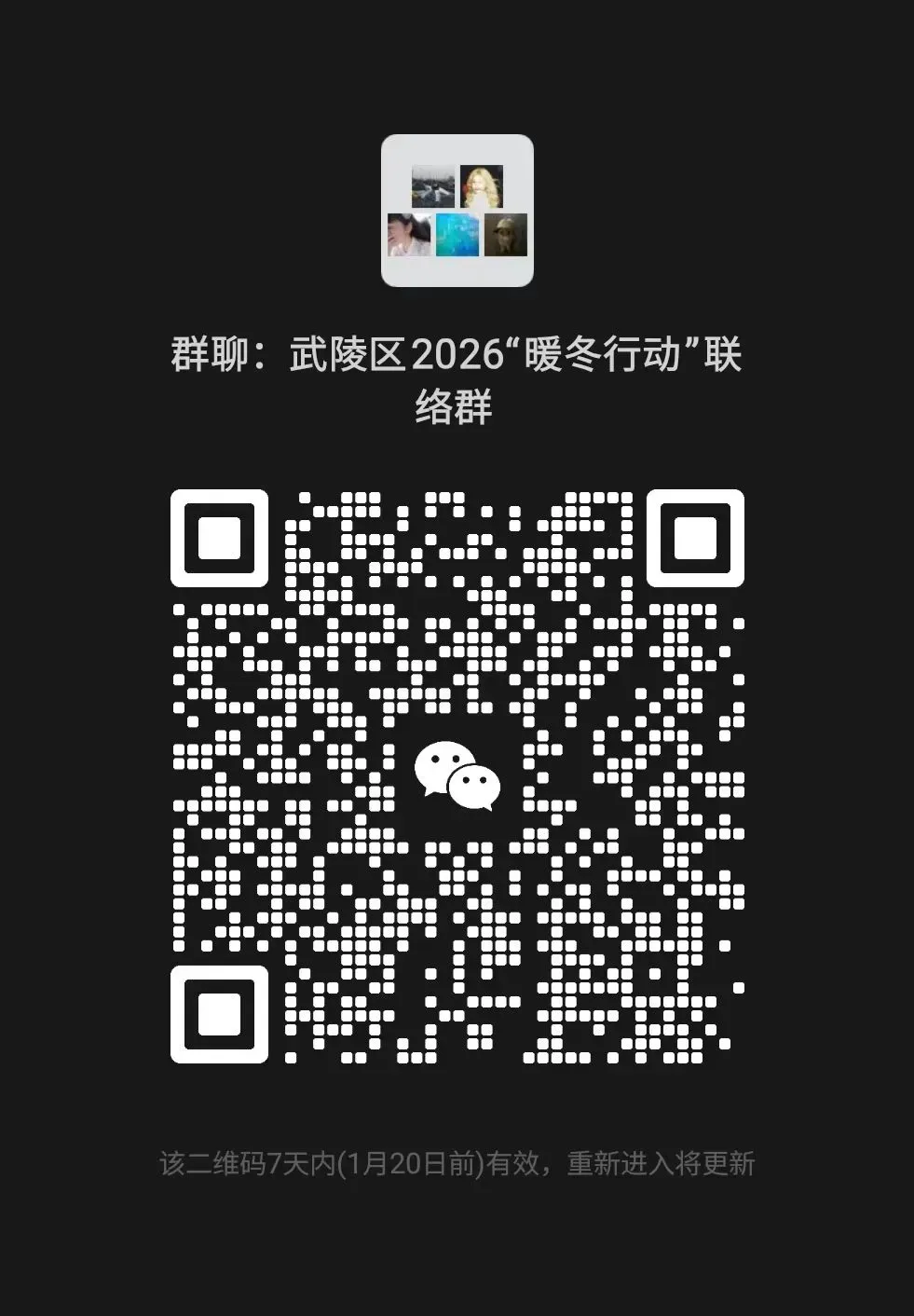 本次活动通过“创青春”社会实践系统和“志愿汇”APP进行线上报名,报名后扫描下方二维码进群(备注:“姓名+学校+联系电话”),后续相关信息将在群内通知(每日开展暖冬行动志愿服务前,可在群内自主申报是否参加次日的志愿活动,无需连续出勤,时间安排较为灵活)。