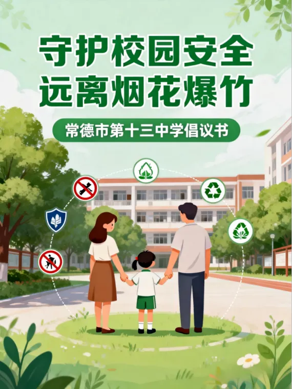 岁序更替,佳节将至。燃放烟花爆竹曾是节日的传统习俗,但其带来的安全隐患、环境污染和噪声扰民问题日益突出。为切实保障广大师生和家长的人身财产安全,维护良好的城市环境和校园周边秩序,积极响应常德市关于禁燃禁放烟花爆竹的相关规定,常德市第十三中学特向全体师生及家长发出如下倡议: