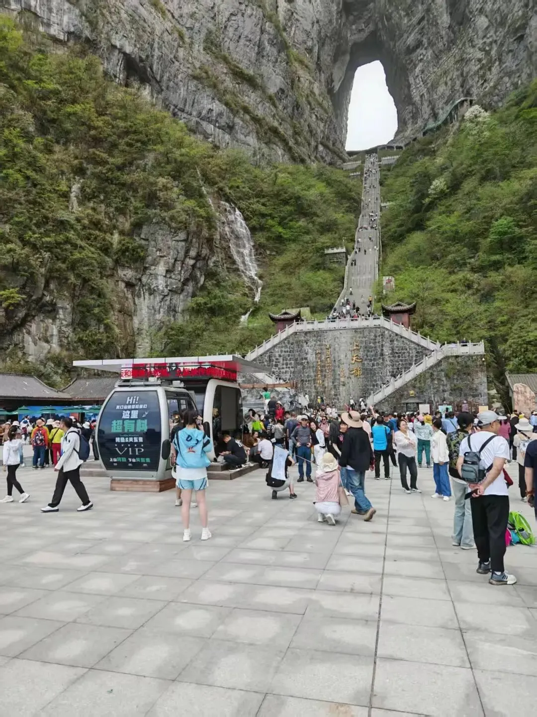 坐上缆车,天堑变通途,昨天的领先变成了今天的超越。依着山势,顺着山形,三大客运索道形成了单双循环的承载分流系统,让天险变成惊奇。天门山、天子山、杨家界穿梭一体,一缆众山小,全貌不言中。峰峦叠嶂层现错出,沟壑深渊幽暗无底,观之出神而惴惴不安,避之落魄而恋恋不舍,居高临下,一险一惊一奇全在一缆灌注,心为之敛而开,神为之收而放,间或心神不宁于收敛而神情开放自若也。始慑而后适,设施的领先让你在瞬时的超越中享受了无尽的体验,境界流彩。或俯或仰或远或近,景为情开,情为景生。