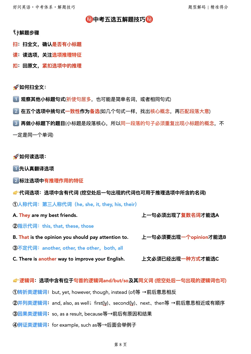 第二,逐个突破解题技巧!
