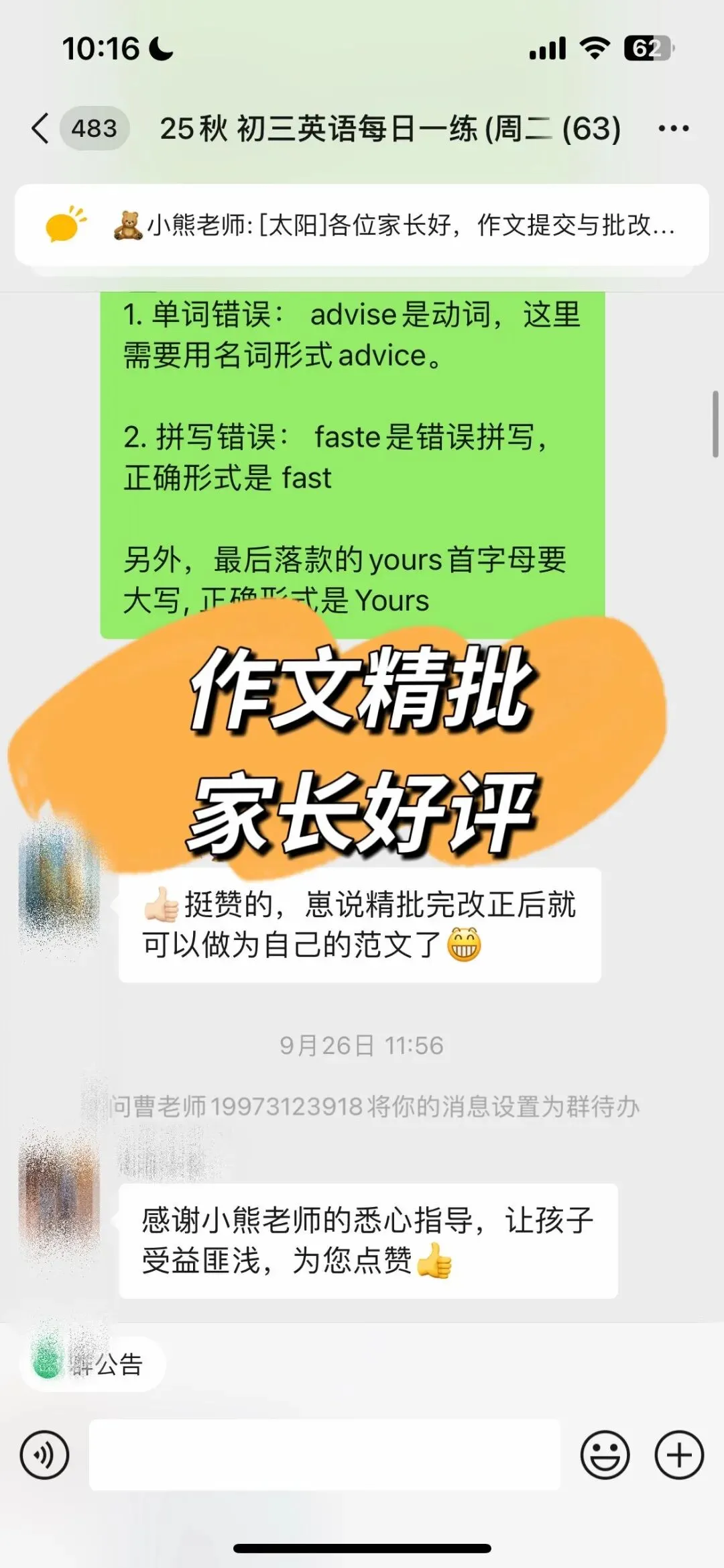 而且,非常重要的是!自己练笔以后一定要交给老师批改,只有精批后的作文才能明白自己的问题在哪,才知道下一篇该如何改进,这样的写作练习才是有意义的。