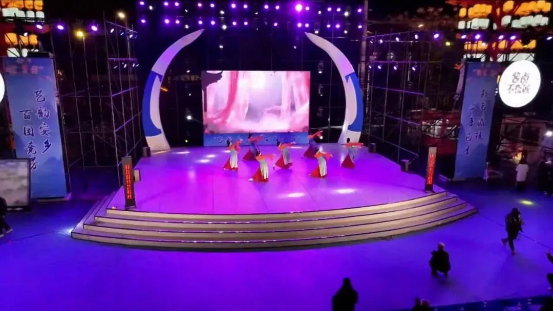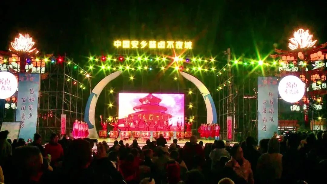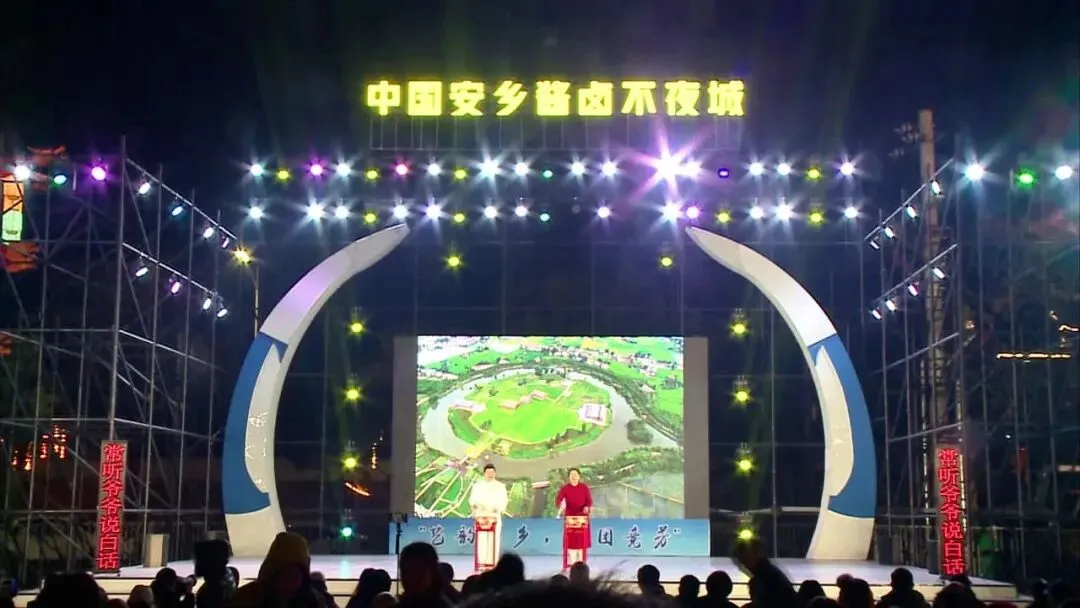 1月14日晚,“桃花源里‘艺’起潮”常德市第十四届群众文艺演出百团大赛优秀节目巡演(安乡站)在酱卤不夜城热闹开演。