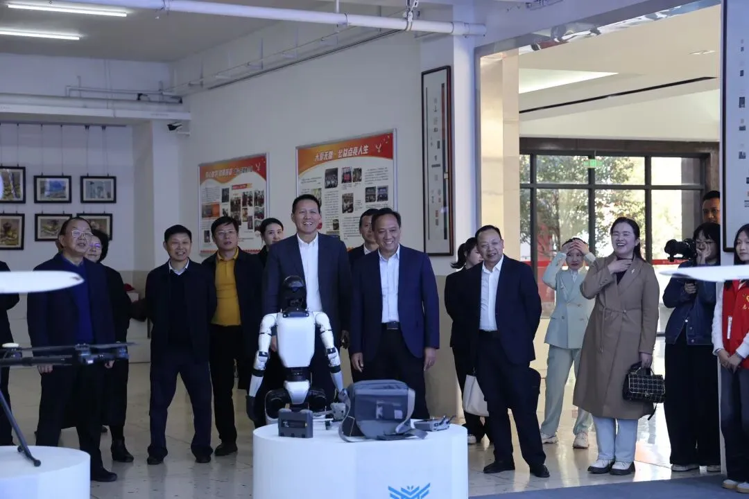 省委教育工委委员、省教育厅党组成员余伟良等领导参观“文化+科技”教学成果展
