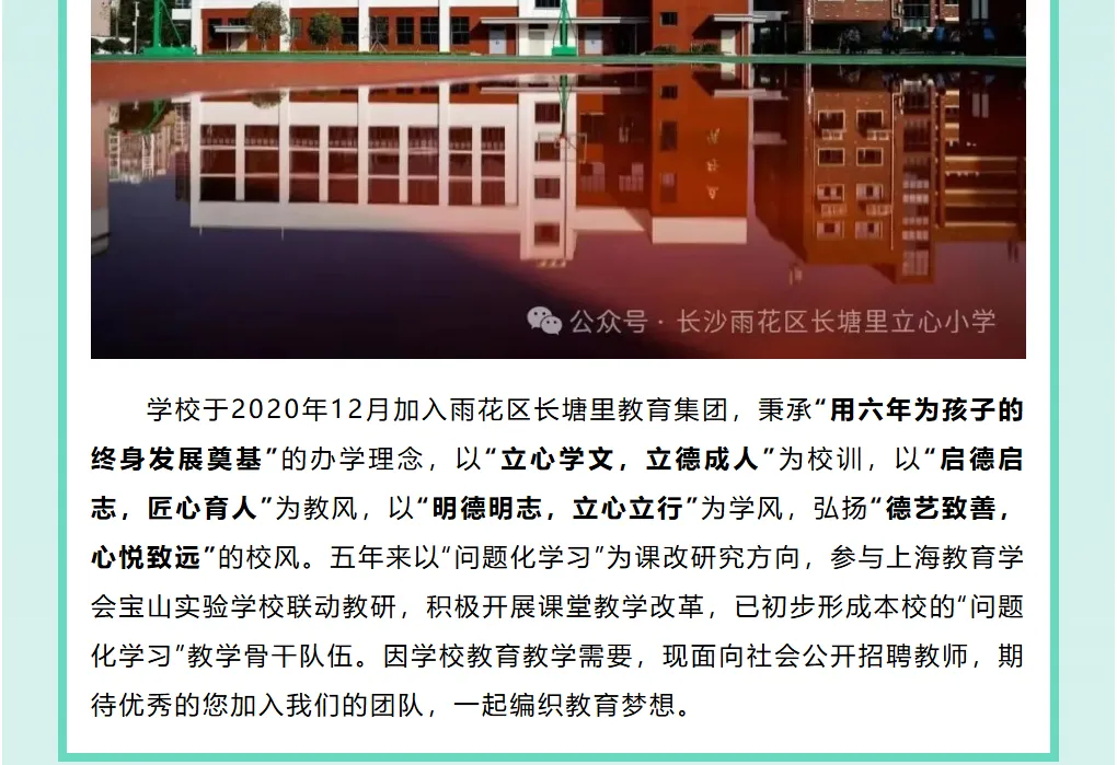 【长沙代课】雨花区长塘里立心小学 2026年春季合同制教师招聘,招聘音乐教师!