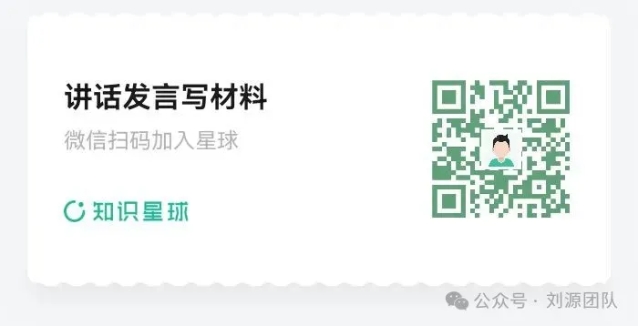 ★本篇选自刘源团队资料大库“讲话发言写材料”资料库”(知识星球号64603280),库内提供万千优秀文稿word版更多、更快、更全、更便捷下载,加入请微信直接识别如下二维码进入。