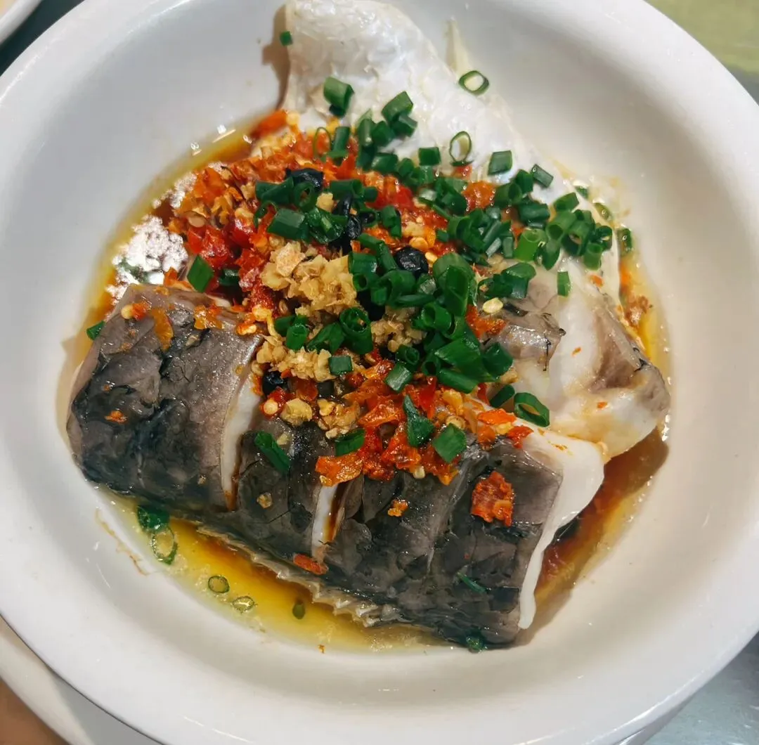 这道菜品用的是长沙人最亲切的草鱼中段。盐腌得透,时间算得准,鱼肉呈现漂亮的蒜瓣状。豆豉与干辣碎在蒸笼里完成了漫长的对话,最终渗进每丝肌理。夹一筷,咸鲜先至,辣意缓来,最后是鱼肉本身的清甜收尾——三种滋味层次分明,像是听了一折有起承转合的好戏。