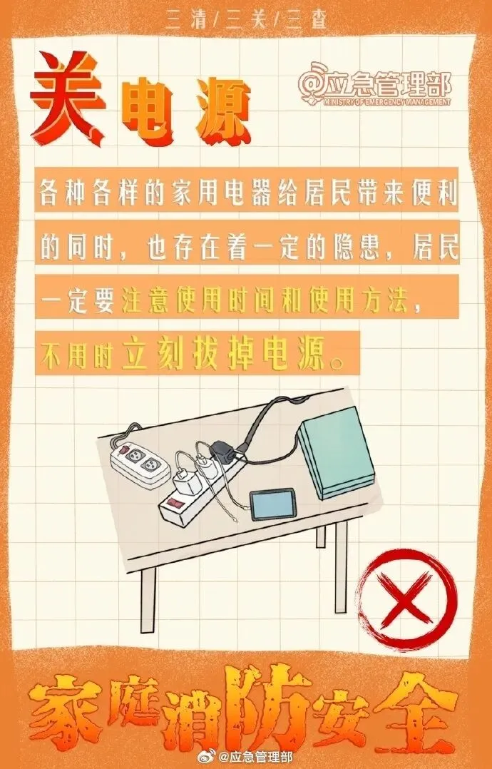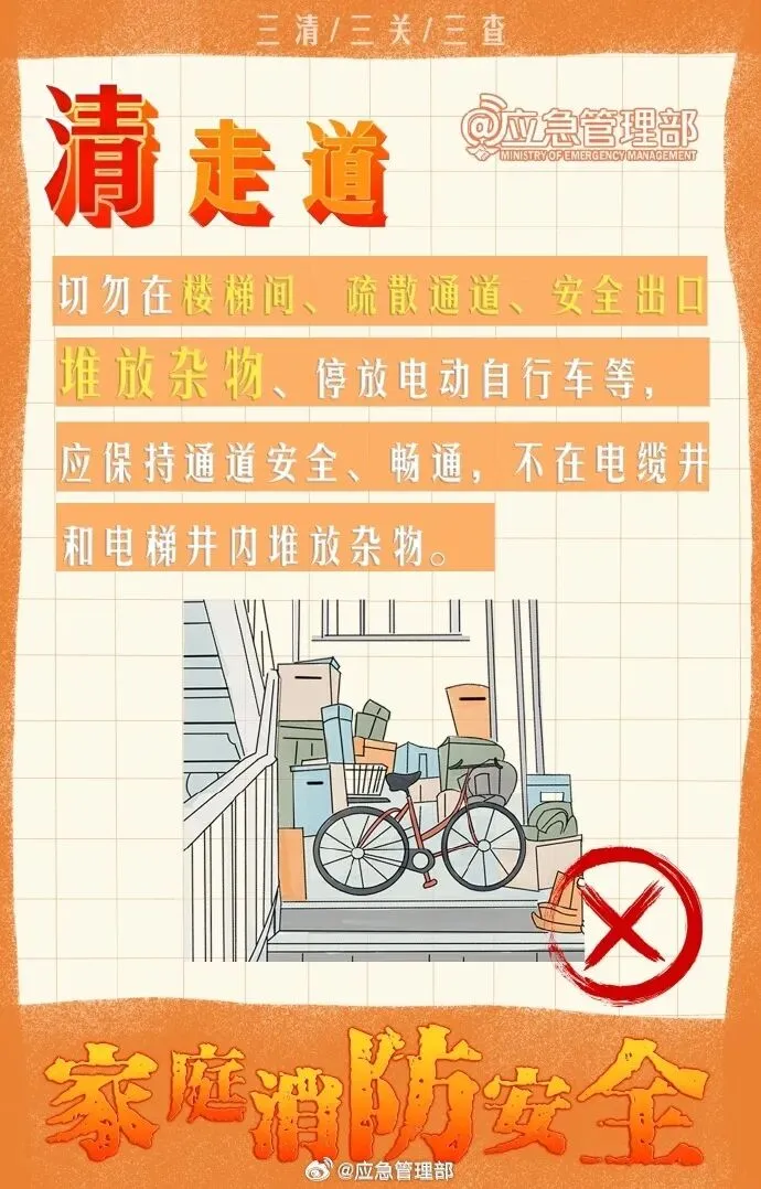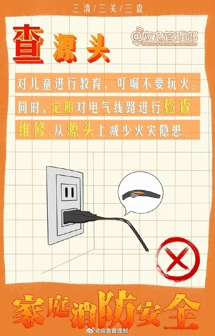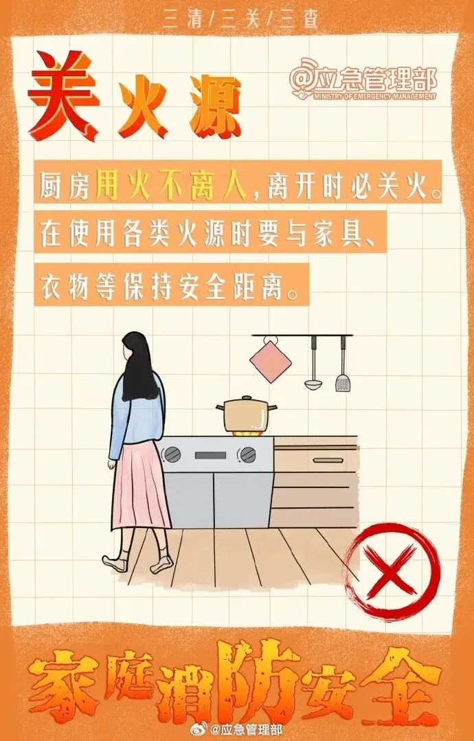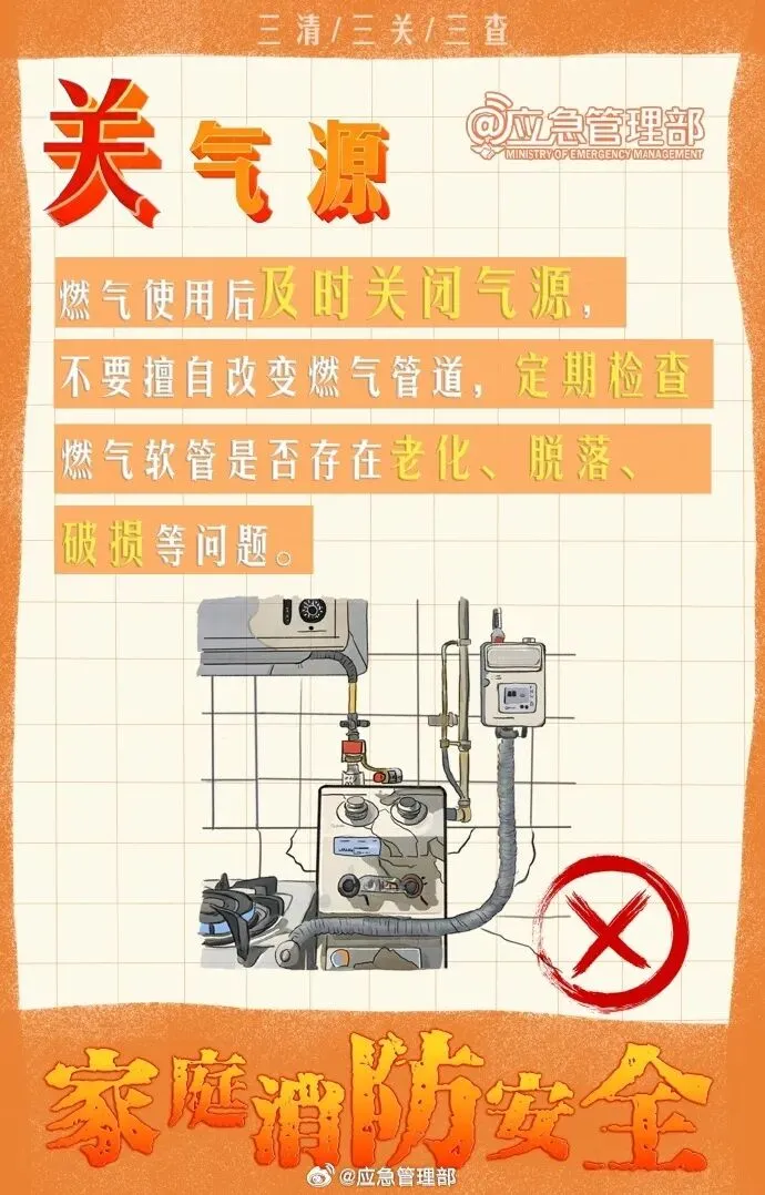 为了自己和家人的安全,让我们一起坚持“防”在日常,做好“三清三关三查”,守护家庭安全!