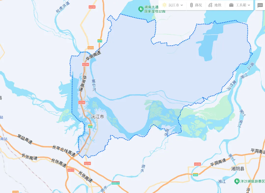 沅江毗邻益阳市区,是益阳代管的县级市,常住人口仅54.9万人,距离长沙仅100余公里车程,一个半小时即可抵达,可以说是毗邻长沙,而与益阳市区资阳区由一条兴阳线连接,不过因为沅江市作为“洞庭明珠”,沅江河湖纵横,水域面积占去市域大半,所以公路交通没有其他县市那么发达。