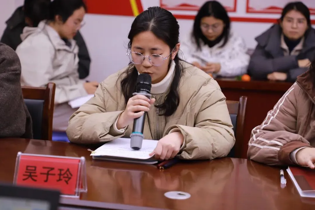 在教师代表发言环节,来自不同学科不同岗位的新教师代表结合自身教学实践,分享了入职以来的体验与思考。大家畅谈课堂探索的喜悦、师生互动的温暖,也真诚提出了在教学资源、专业培训、后勤保障等方面的需求与建议。