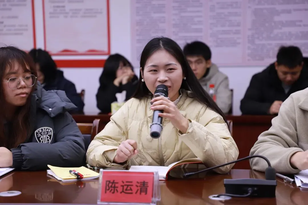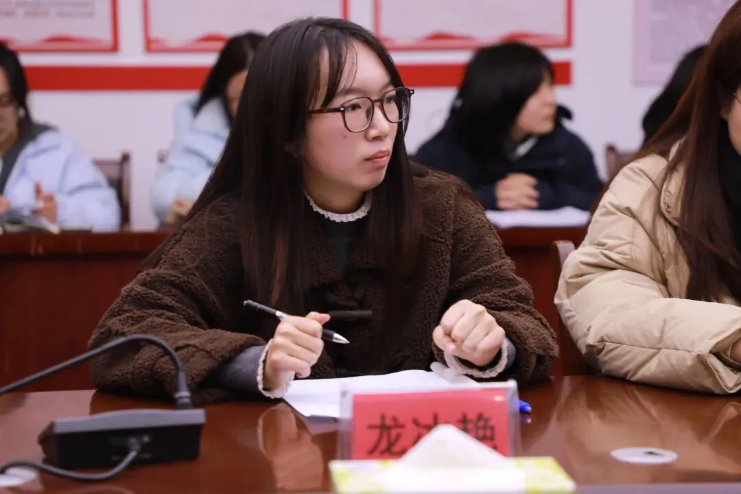 随后的自由发言环节气氛活跃,新教师们各抒己见,展现了蓬勃的教育热情与积极融入的主人翁精神。有的老师希望学校能提供更多学习交流的平台;有的老师提到食堂菜品可以进一步丰富口味;还有老师关切地询问学校是否能为有需求的教师提供更便利的住宿条件,帮助大家安心从教。