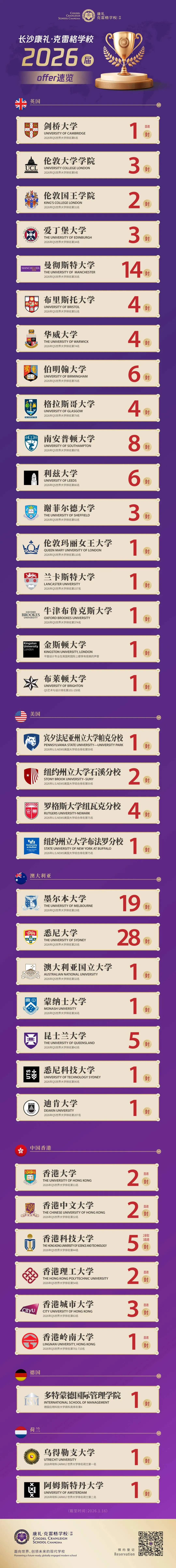 康礼作为湖南省唯一连续两届斩获牛津、剑桥大学录取的学校,办学成果亮眼。三届毕业生斩获超500封世界名校offer,全球录取率100%,涵盖英、美、澳、加、中国香港等国家和地区,录取质量与数量均位居国内同类领域前列。截至目前,2026届已成功斩获145封世界名校录取。