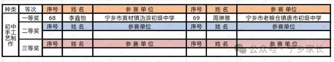 初中组获奖名单